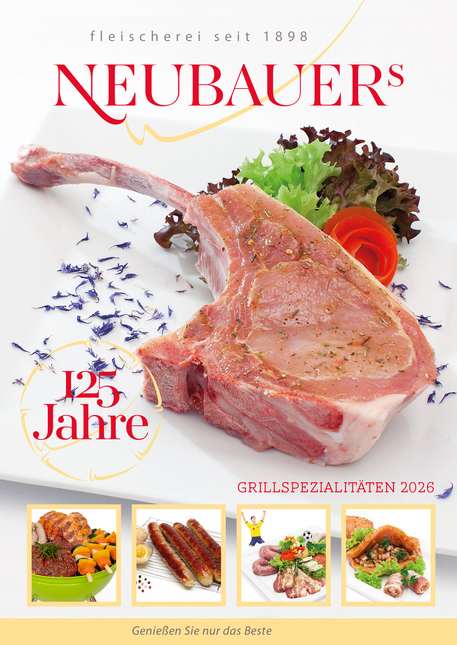 Kein Problem – denn bei uns erhalten Sie leckere Grillspezialitäten vom Schwein, Geflügfel, Rind und Lamm sowie eine Auswahl vegetarischer und veganer Köstlichkeiten. Und natürlich dreht sich jetzt auch wieder alles um die Wurst: Neubauers Bratwurst – fein oder grob, gebrüht oder roh, Fernseh-Bratwurst, Bratwurst-Schnecken, Bratwurstspieße und viele weitere Kreationen...